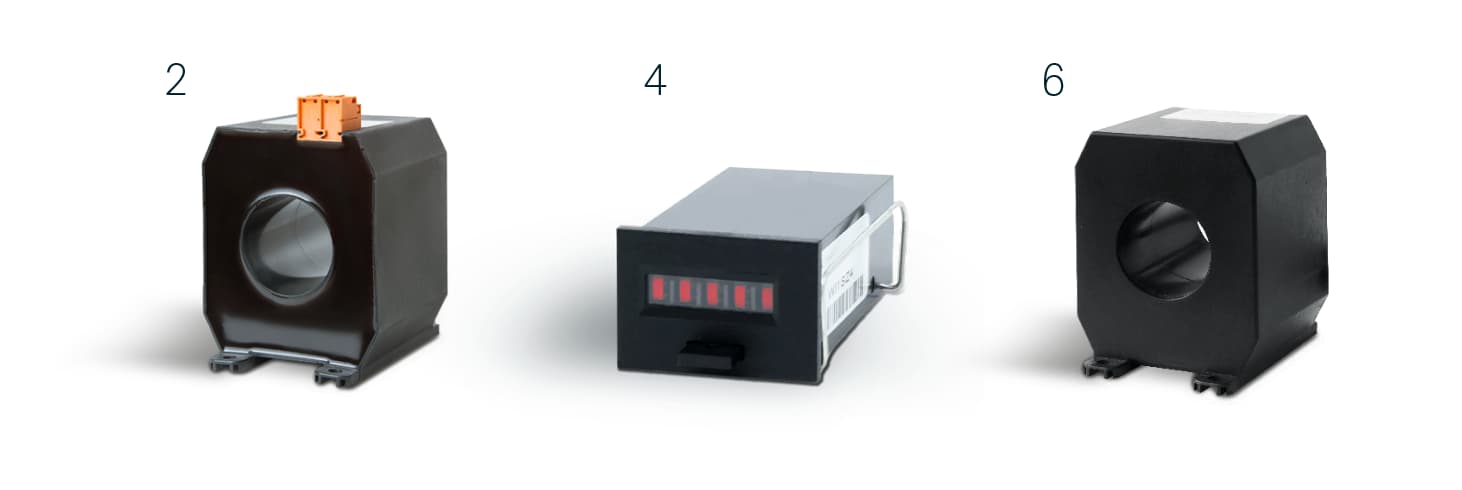 Das WIC1 g2 ist für den Betrieb mit speziell entwickelten, besonders effizienten Stromwandlern (CTs) von SEG optimiert. Sollten aus technischen oder historischen Gründen Standard-Stromwandler mit 1 A oder 5 A verwendet werden müssen, lässt sich das WIC1 g2 über Adapterstromwandler an diese anschließen. Nachfolgend finden Sie eine Übersicht der verfügbaren optionalen Komponenten: