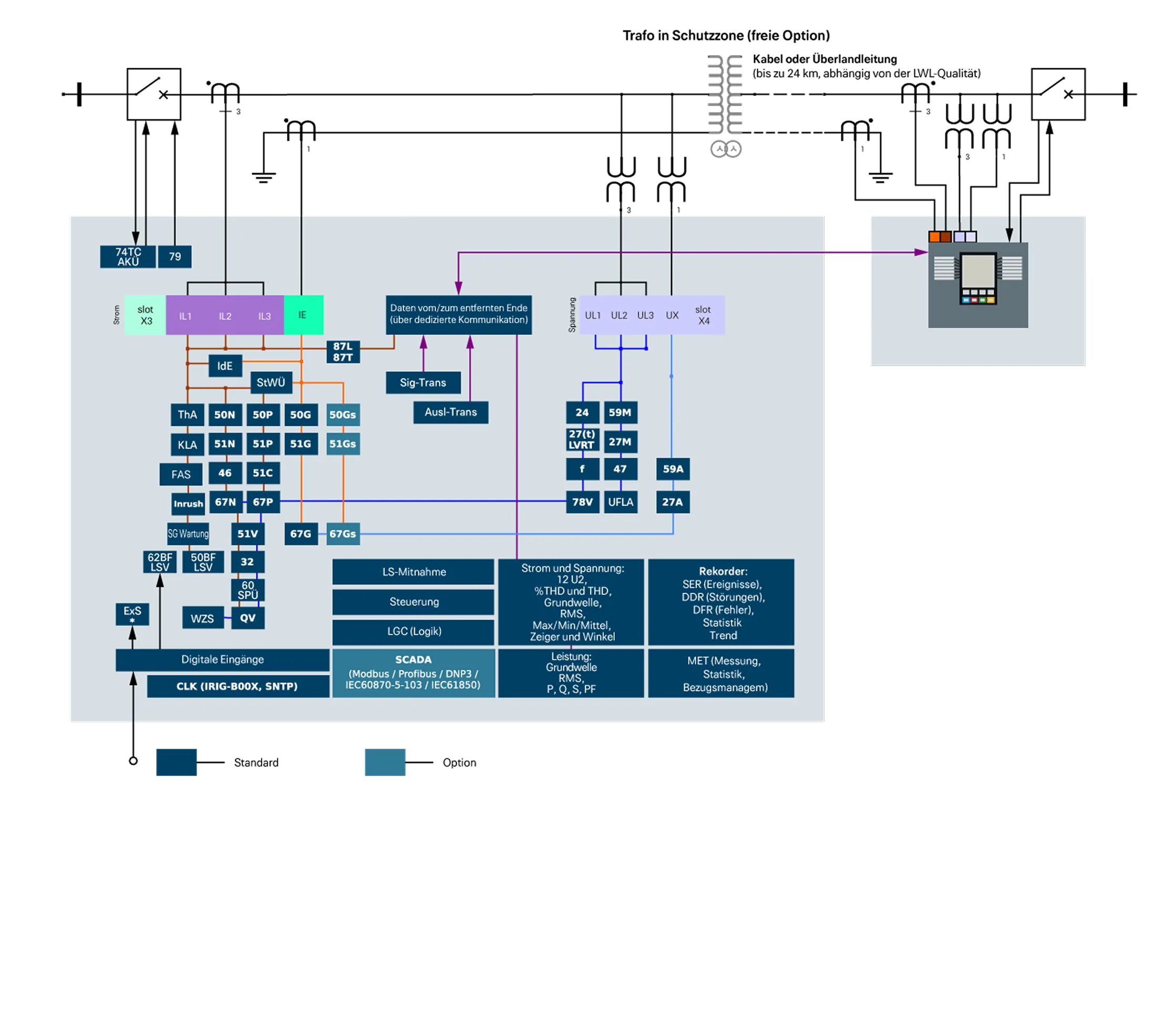 - Full Differential Protection for Transfomers within the line/cable