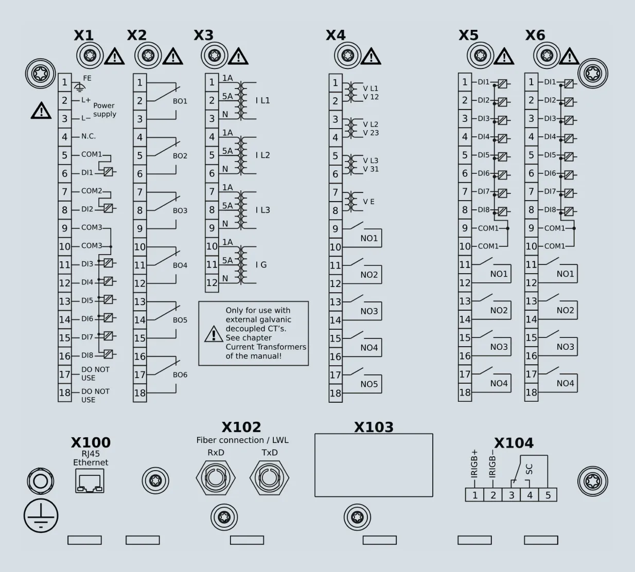 - Flexible 4th Voltage measuring input (2) 2 elements VE> or VX (for synchrocheck)