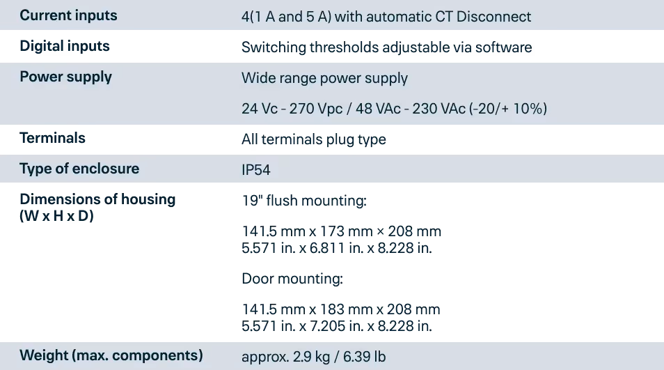 Overcurrent and earth overcurrent protection as well as unbalanced load protection are included in the protection package. The status and operation of the motor will also be monitored by means of the statistic and trend recorder. All important events and measuring values will be logged by means of the start, event, failure and disturbance recorder. The protection functions of the MRM4 have been adapted to comply with the requirements of the VDE-AR-N-4110: 2023-09.